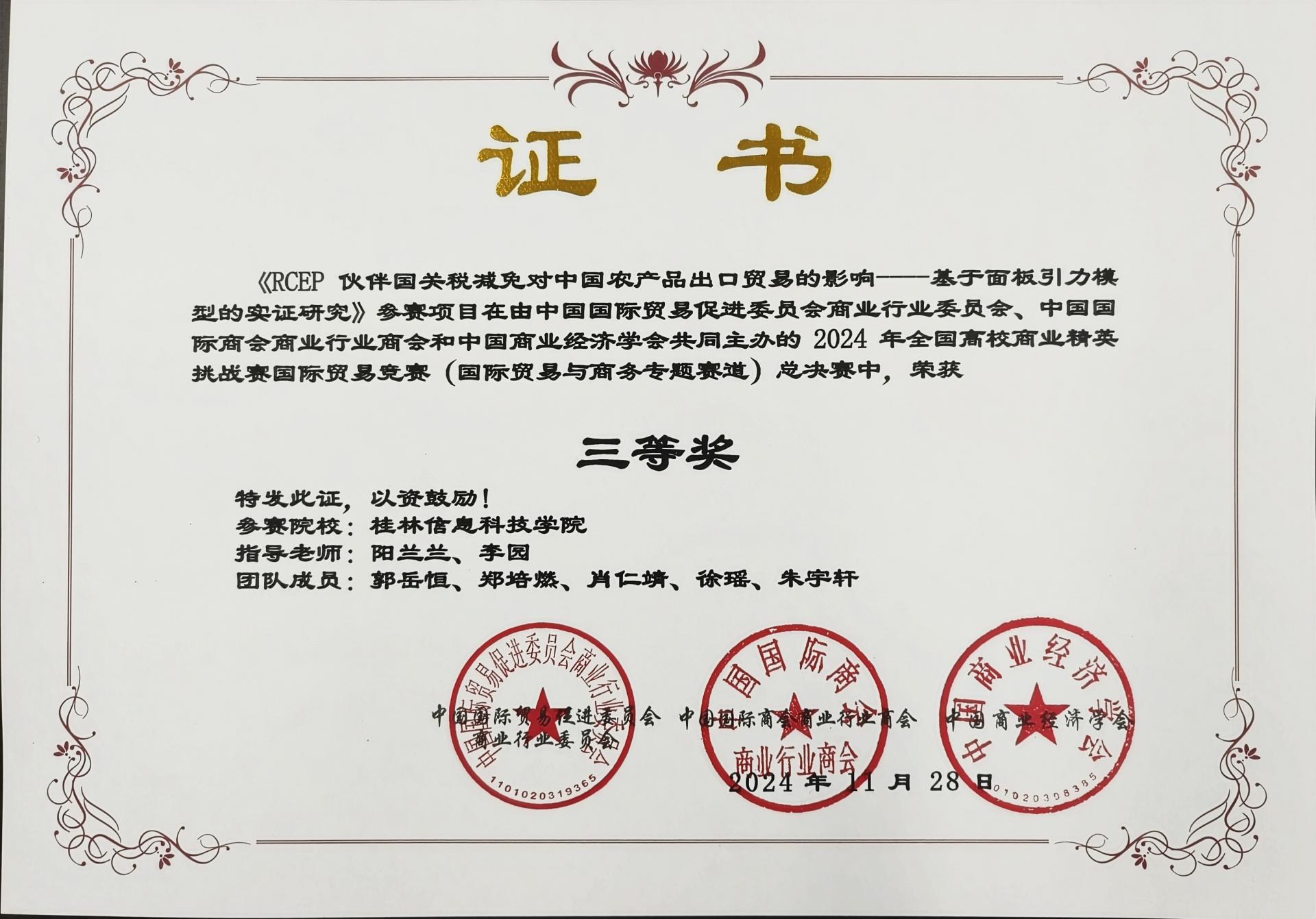 国际贸易与商务专题赛道三等奖