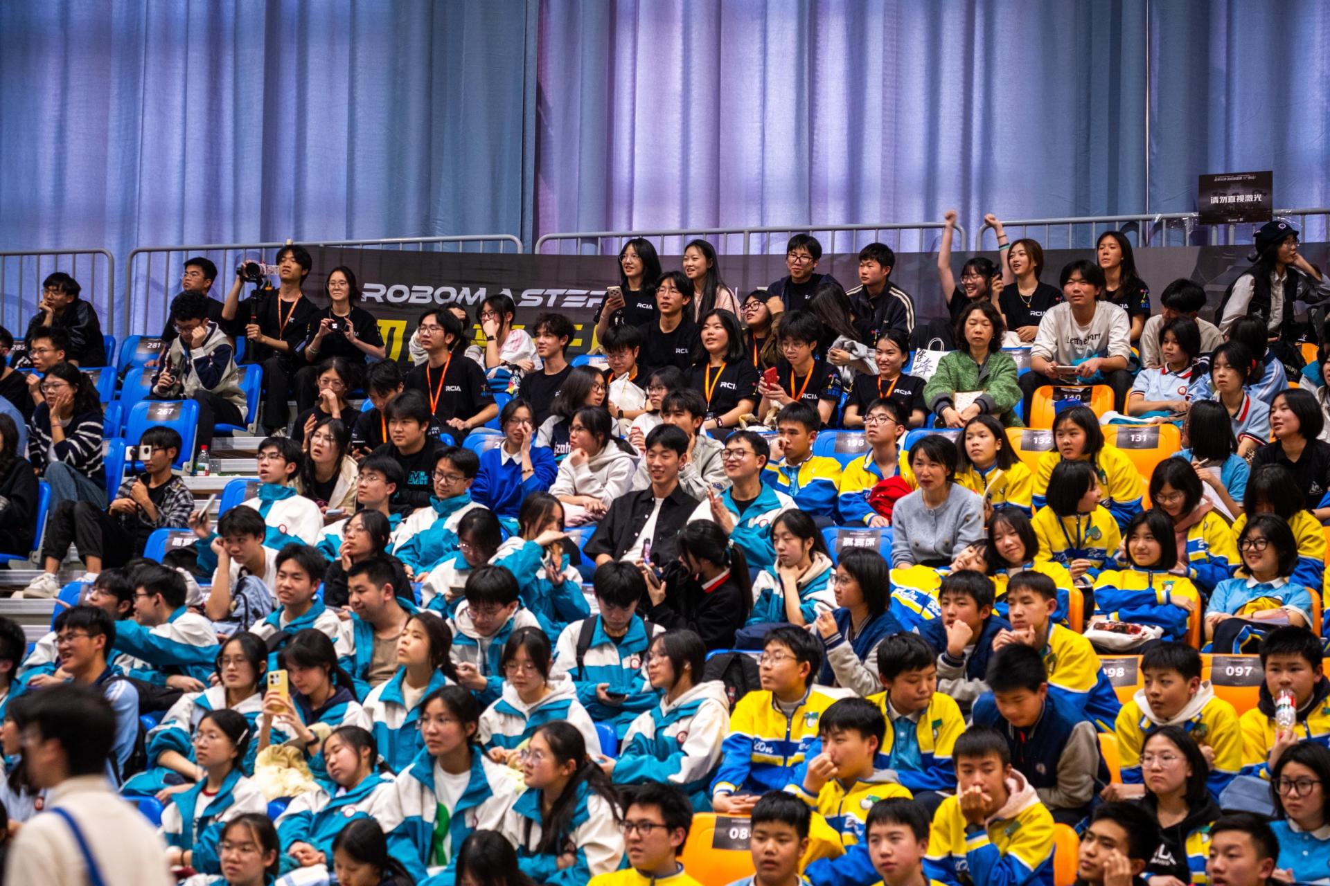 此次大赛吸引了来自桂电中学、临桂三中、田家炳中学、桂林三中、清风实验学校、逸仙中学、大河中心校、中山中学(按照到场时间先后顺序)等8所中学近千名师生到场观赛。此次比赛展示了“机器视觉”、“人机交互”等先进技术的实际应用方法,现场多功能机器人团队的精彩对抗也向中学生们生动展现了战术配合技巧与团队合作精神。现场的中学生们沉浸于场内各式机器人的激烈战斗,掌声也都跟随着比赛节奏而此起彼伏。同时,beat365官网还在学校双创基地、知行楼科技文化月现场等地组织了科技展览和互动体验活动,让中学师生在观赛之余,还能深入了解高校的科研环境、教学资源以及科技创新成果,为他们提供了近距离接触智能科技的机会,为未来的学业规划和职业发展提供有益参考。