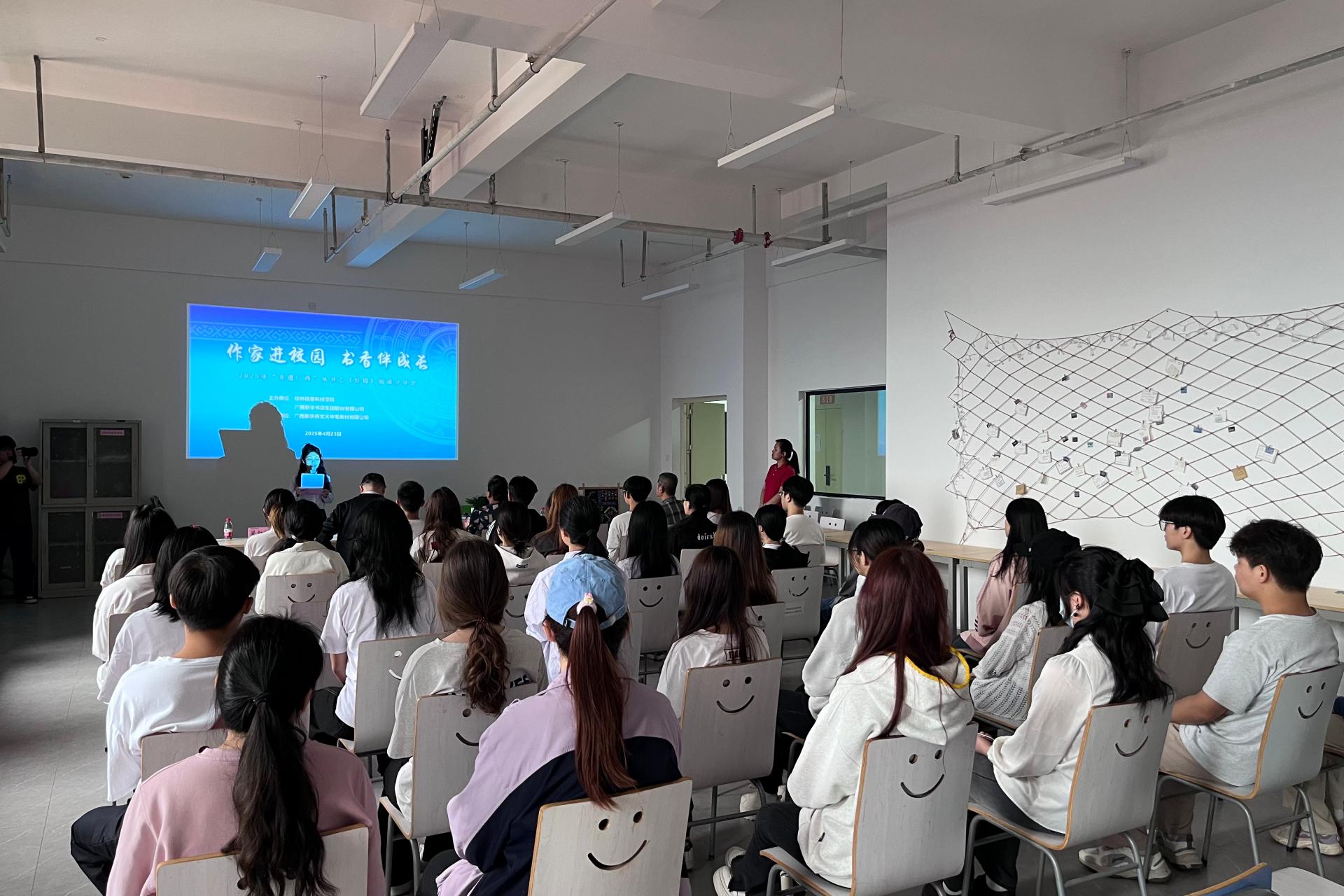在庆祝第30个“世界读书日”之际,4月23日上午,广西新华书店集团股份有限公司向beat365官网捐赠2400余册珍贵图书,图书捐赠仪式暨阅读分享活动在知行楼621室举行,广西新华书店集团股份有限公司销售经理陈青萍、学校图书馆馆长申琍、教务处副处长张锟以及创意设计学院师生代表60余人参加了活动。