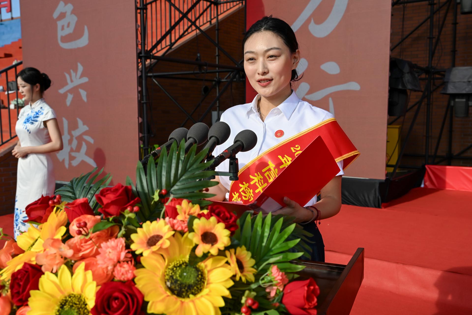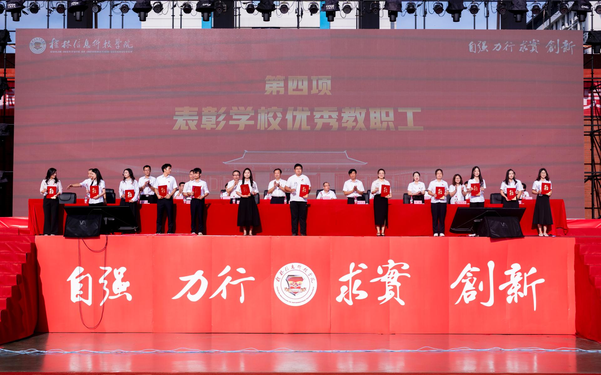 典礼在庄严的国歌声中拉开序幕。为弘扬教育家精神,表彰先进典型,凝聚育人力量,校长解庆林宣读了学校2025年“信科榜样”优秀教师、优秀教育工作者,教学能手表彰决定。校领导们分别为学校“2025年信科榜样·优秀教师、优秀教育工作者”以及“2025年教学能手·领航组、启航组”教师颁发证书并向他们表示祝贺。