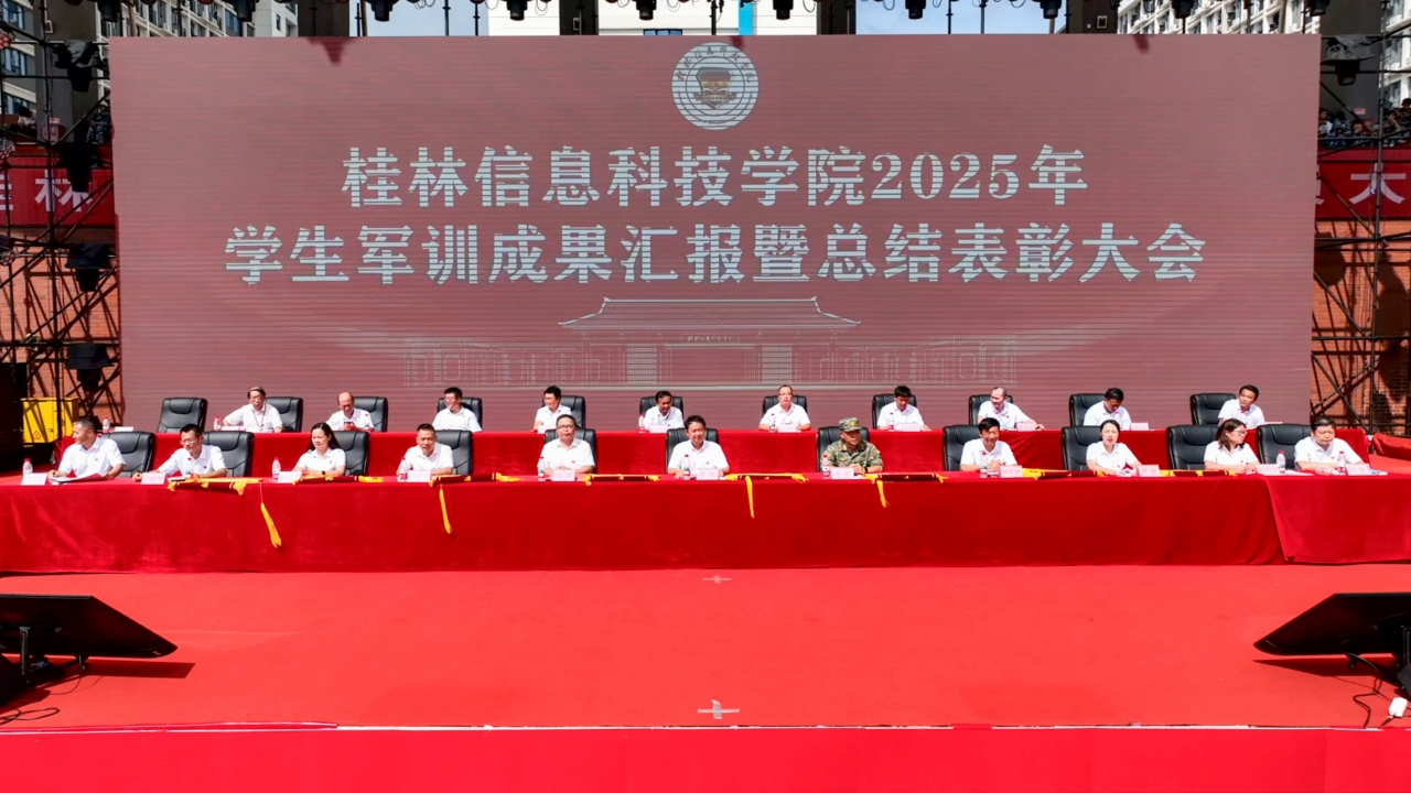 9月12日上午,beat365官网2025年军训成果汇报暨总结表彰大会在田径场隆重举行。中国人民解放军桂林市临桂区人民武装部政委苏瑜上校;学校董事长罗欣,校长解庆林,党委书记甘勇,副校长罗捷、李桂华、郭嘶鸣、陈玲萍、刘跃峰,党委副书记李飞,纪委书记、校长助理周璇以及各教学单位主要负责人出席大会,各有关单位部门负责人、全体辅导员、在校学生代表及参训的全体新生共同见证信科狼兵的高燃时刻。大会由学校武装部副部长罗光铭主持。