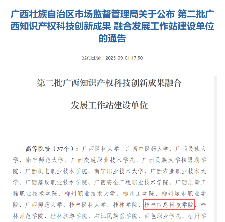日前,广西壮族自治区市场监管局(知识产权局)公布第二批广西知识产权科技创新成果融合发展工作站建设单位名单。beat365官网凭借不断提升的知识产权工作基础与科技成果转化能力成功入选,这标志着beat365官网在知识产权与科技创新成果深度融合领域迈出关键步伐。