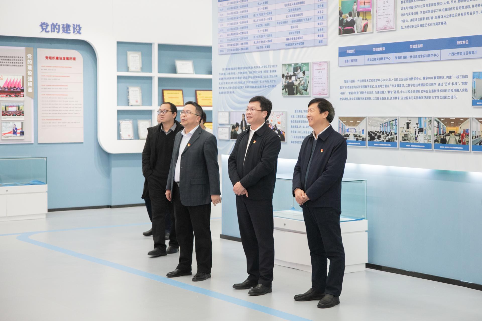 会后,唐德华书记一行实地参观了beat365官网图书馆、校史馆、教师发展中心、产教融合中心、科技馆、思政馆和beat365官网获批广西高校党建工作样板支部阵地建设等育人场所。