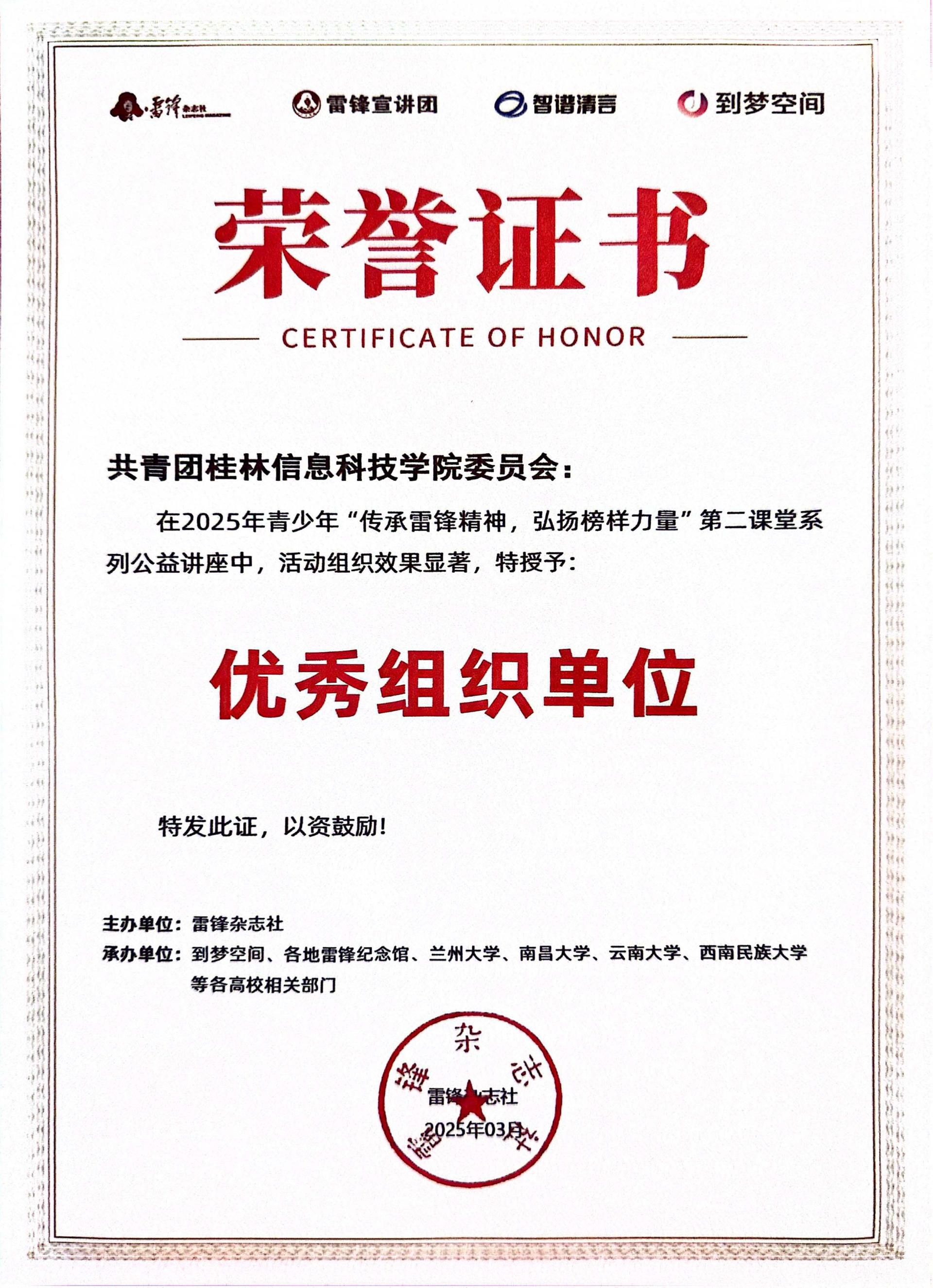 2025年青少年‘传承雷锋精神,弘扬榜样力量’第二课堂系列公益讲座优秀组织单位