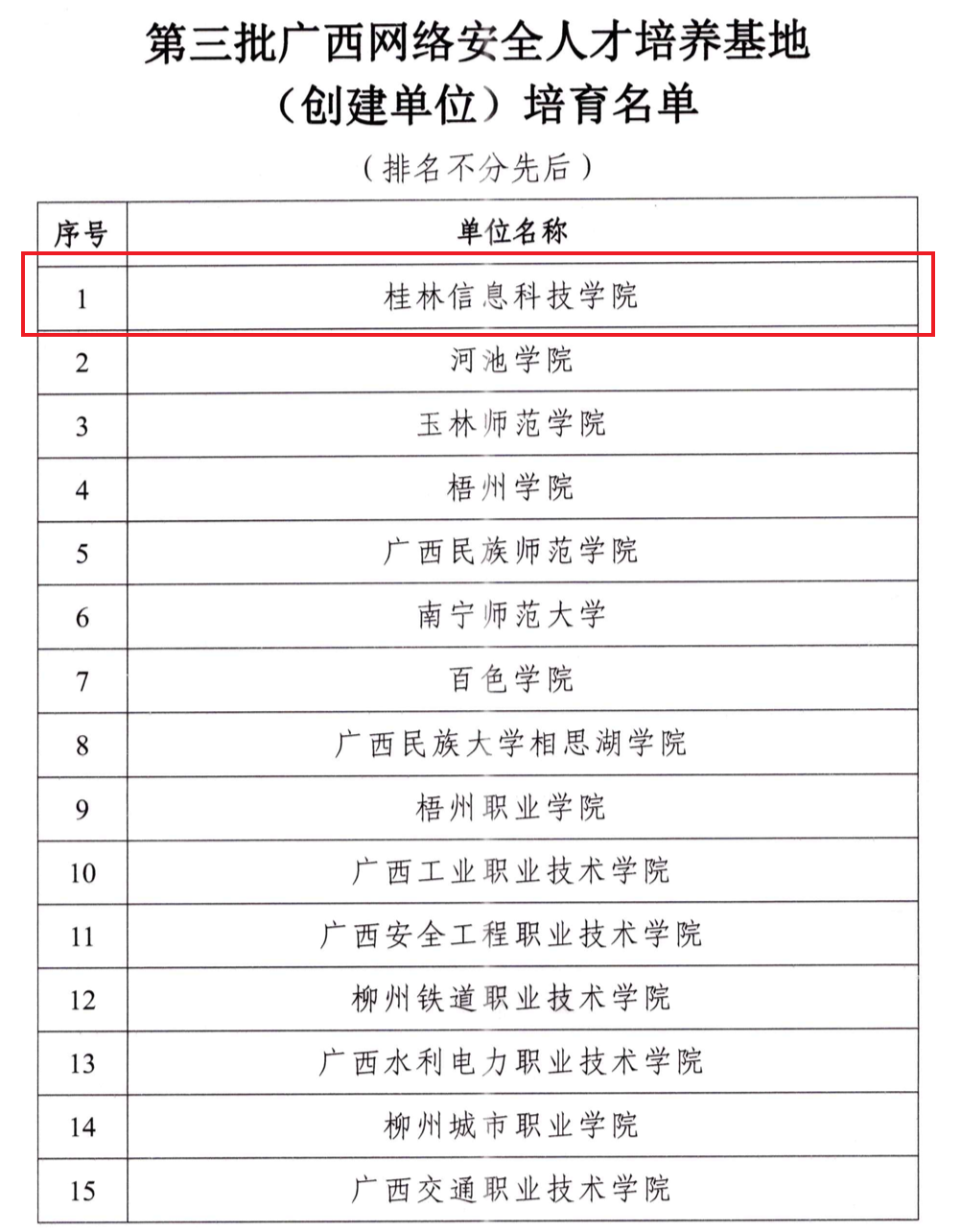 第三批广西网络安全人才培养基地(创建单位)培育名单(文件截图)