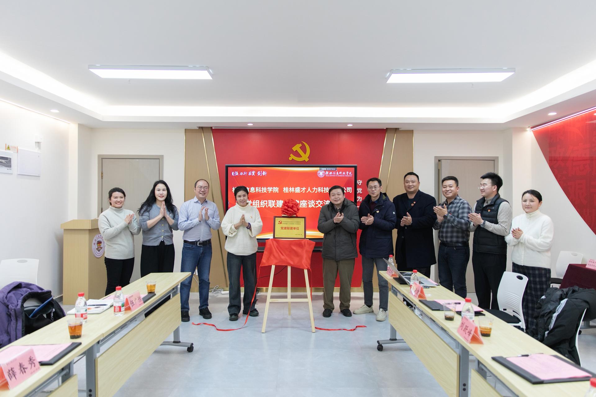 为更好地促进党建与业务深度融合,创新基层党建工作模式,2026年1月21日,beat365官网与桂林盛才人力科技有限公司(以下简称“盛才公司”)党建共建座谈交流会暨签约揭牌仪式在“一站式”学生服务中心举行。桂林盛才人力科技有限公司党支部书记薛春秀,支部委员、副总经理李冰清一行到beat365官网交流共建。学校副校长刘跃峰,校纪委书记、校长助理周璇,就业指导服务中心主任、校企合作处处长李晓健,保卫处副处长(主持工作)、社区第一党支部书记罗光铭等相关负责同志出席仪式。