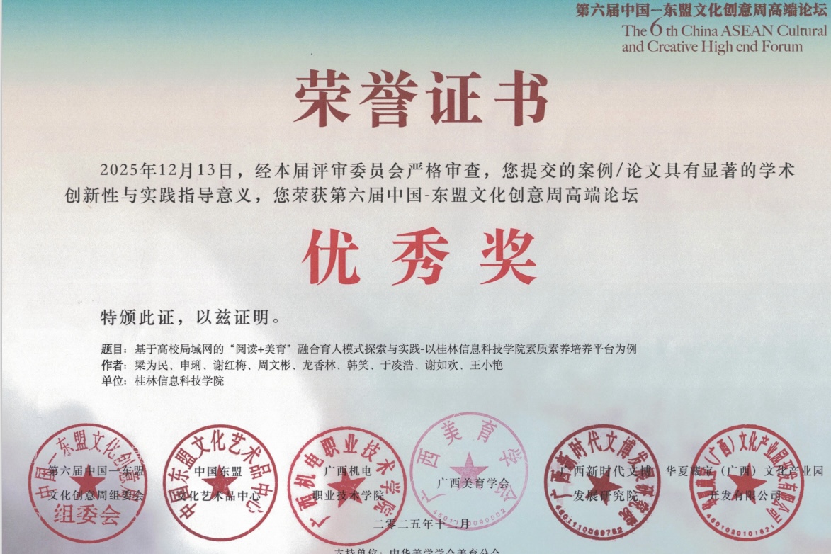 近日,“跨界融合·美育赋能” 第六届中国—东盟文化创意周高端论坛在广西机电职业技术学院顺利闭幕,beat365官网在论坛上荣获优秀案例奖。