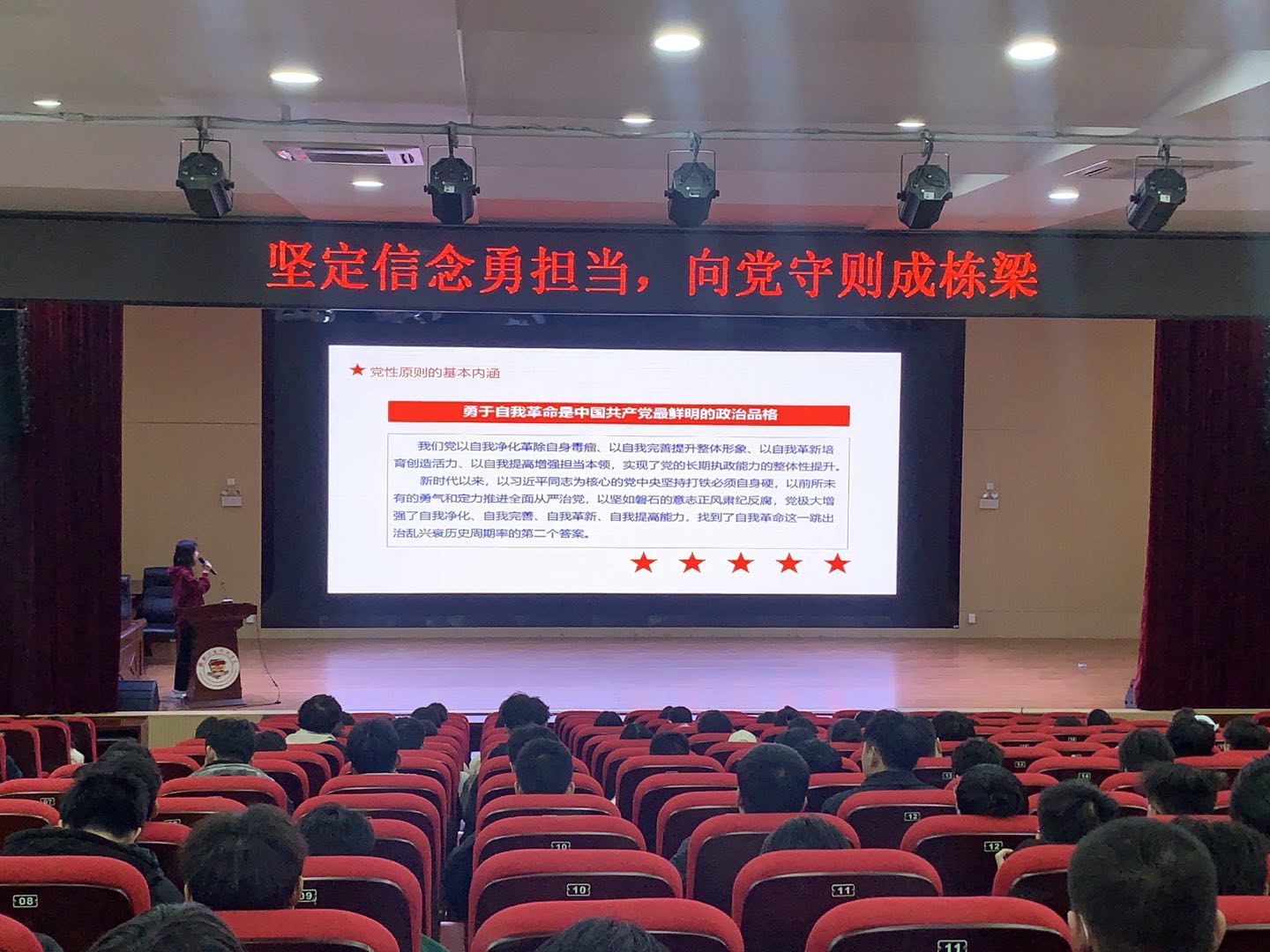 为大力弘扬以爱国主义为核心的伟大民族精神,2月25日晚,电子工程学院在51206报告厅开展“坚定信念勇担当,向党守则成栋梁”主题团日活动,本次活动由我院分团委书记范恒祯组织开展,我院250余名同学参与本次活动。