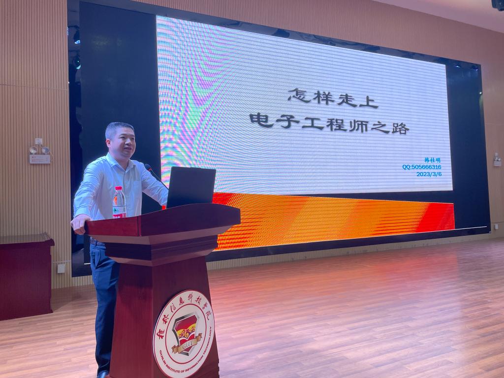 为营造良好的创新实践学习氛围,3月6日,电子工程学院在51206报告厅举办科技之光系列活动之“烛光”讲座。本次讲座由学院院长韩桂明主讲,2021级、2022级共计260名学生参与。