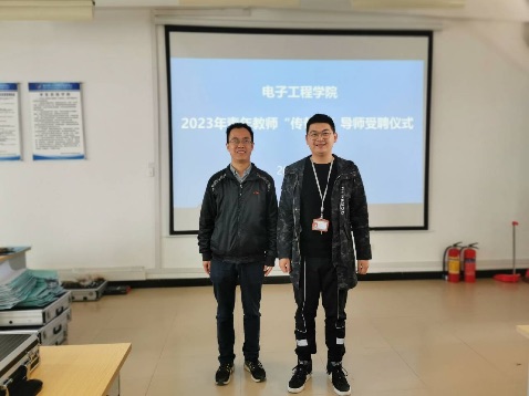 3月15日,电子工程学院在41404实验室举行2023年青年教师“传帮带”导师受聘仪式。学院院长韩桂明、党总支书记庄璧瑛、副院长易艺、受聘导师及青年教师参加会议。