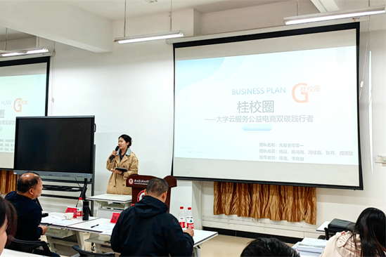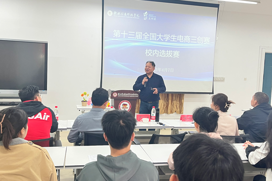 为更好地培养大学生创新思维、创业意识和创造能力,4月7日,第十三届全国大学生电子商务“创新、创意及创业”挑战赛(以下简称“三创赛”)校内选拔赛决赛在11210教室顺利举行,商学院院长严宗光、院长助理沈洋、电子商务教研室主任张振华,上海岚瑟服装设计有限公司总经理陈莉女士,桂林晓梦传媒有限公司总经理梁钊源先生等出席活动并担任大赛评委。