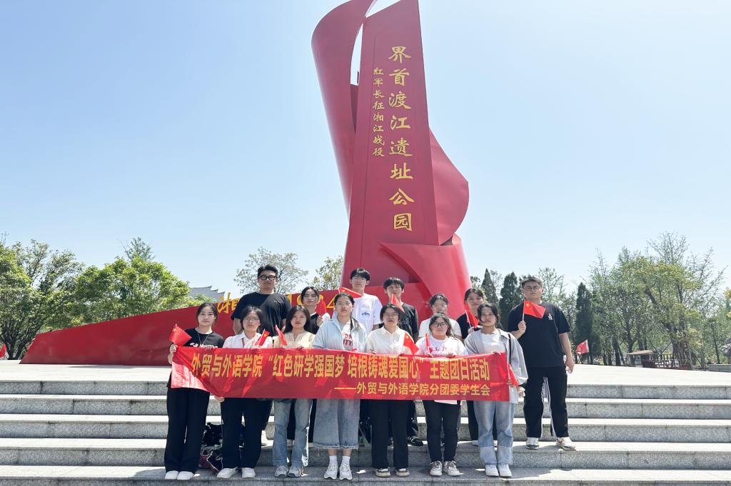 为弘扬爱国主义精神,引导学生传承红色血脉。4月15日至17日,外贸与外语学院组织师生代表赴全州红军长征湘江战役纪念馆、灌阳新圩阻击战史实陈列馆以及红军长征湘江战役界首渡江遗址公园开展“红色研学强国梦 培根铸魂爱国心”主题团日活动。