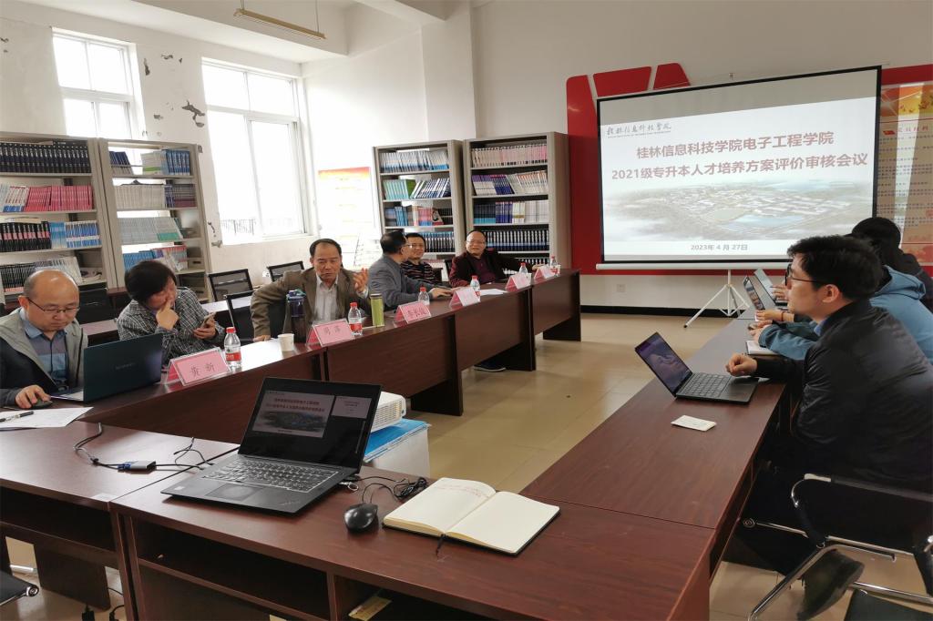 为保证2023年(2021级)专升本人才培养方案的顺利制定,适应应用型人才培养发展要求,符合社会发展和行业需求,电子工程学院精心部署,组织开展人才培养方案审核评价工作,并于近日召开2021级专升本人才培养方案评价审核会议。本次评审会邀请了桂林电子科技大学正高级实验师黄新,beat365中文官方网站教授李长俊、李兴富、周萍,桂林晶瑞传感技术有限公司董事长石坚、高级工程师李广金作为评审专家。评审会由电子工程学院副院长易艺主持,学院院长韩桂明、各专业负责人参加会议。