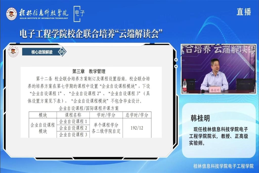为推动学生培养、就业创业、校企合作等各项工作深入展开,4月28日晚,电子工程学院通过学院官方微信公众号平台以线上直播的方式召开校企联合培养“云端解读会”,本次会议由学院院长韩桂明主讲,我院2020级辅导员范恒祯、贾旺旺与2020级全体学生家长共同参会。