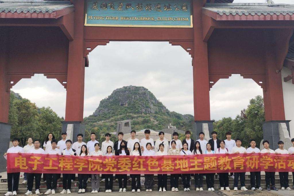 为扎实推进党建带团建制度机制落实落地、见行见效,大力弘扬爱国主义精神,传承红色基因,11月5日,电子工程学院党委组织电子工程学院第四学生党支部学生党员、电子工程学院分团委和学生会学生代表前往美国飞虎队桂林遗址公园开展红色研学活动。电子工程学院第四学生党支部书记彭博涛老师带队参加。