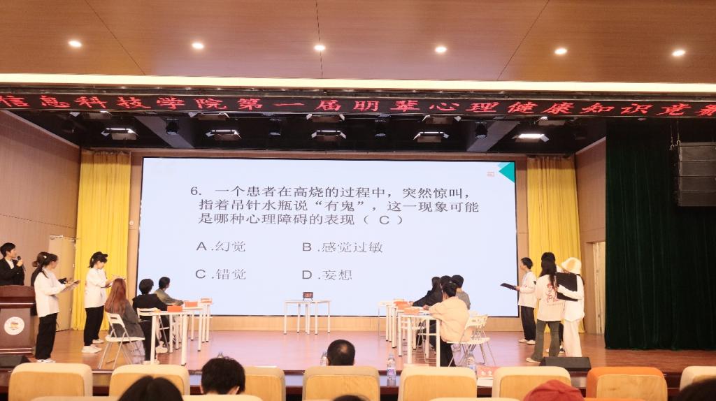 12月10日上午,由大学生心理健康教育与咨询中心主办,大学生心理健康志愿者协会承办的“beat365中文官方网站第一届朋辈心理健康知识竞赛”在F107报告厅顺利举行。大学生心理健康教育与咨询中心主任张承宗,心理健康教育专职教师卿兰兰、白雯雯和冀艳玲老师出席本次活动,七支学院代表队和近400名观众齐聚一堂,共同见证了这场集知识、竞技、互动于一体的比赛。