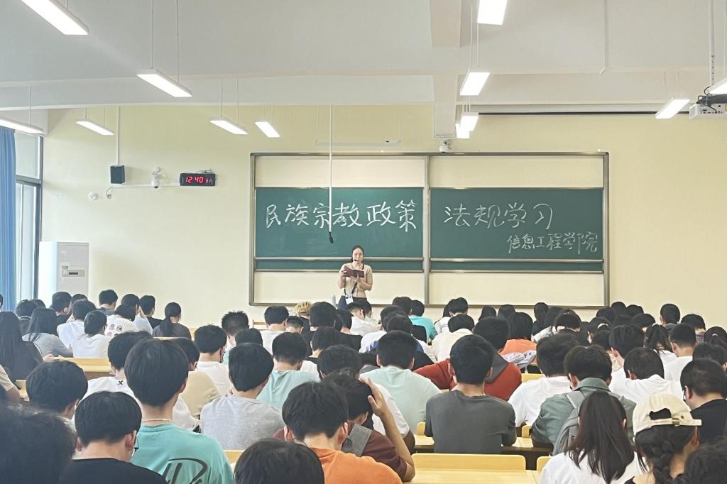 为增强全院师生对我国民族宗教政策法规的了解,近日,信息工程学院开展了2024年春季学期民族宗教政策法规学习会。学习会由各年级辅导员主持,全院学生参加学习会。