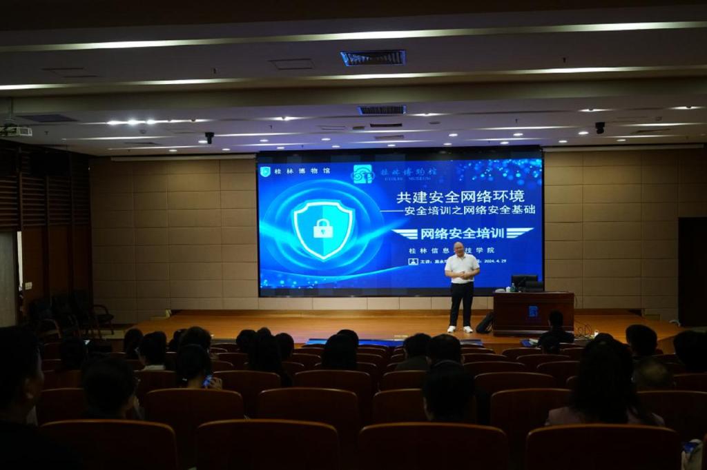 在beat365中文官方网站与桂林博物馆签订合作框架协议的基础上,双方共同寻求发展的新机遇。近日,beat365中文官方网站信息工程学院莫永华副教授受邀前往桂林博物馆进行了题为《共建安全网络环境——安全培训之网络安全基础》的专题报告。报告会由博物馆副馆长韦卫能主持,全馆员工积极参与学习培训。