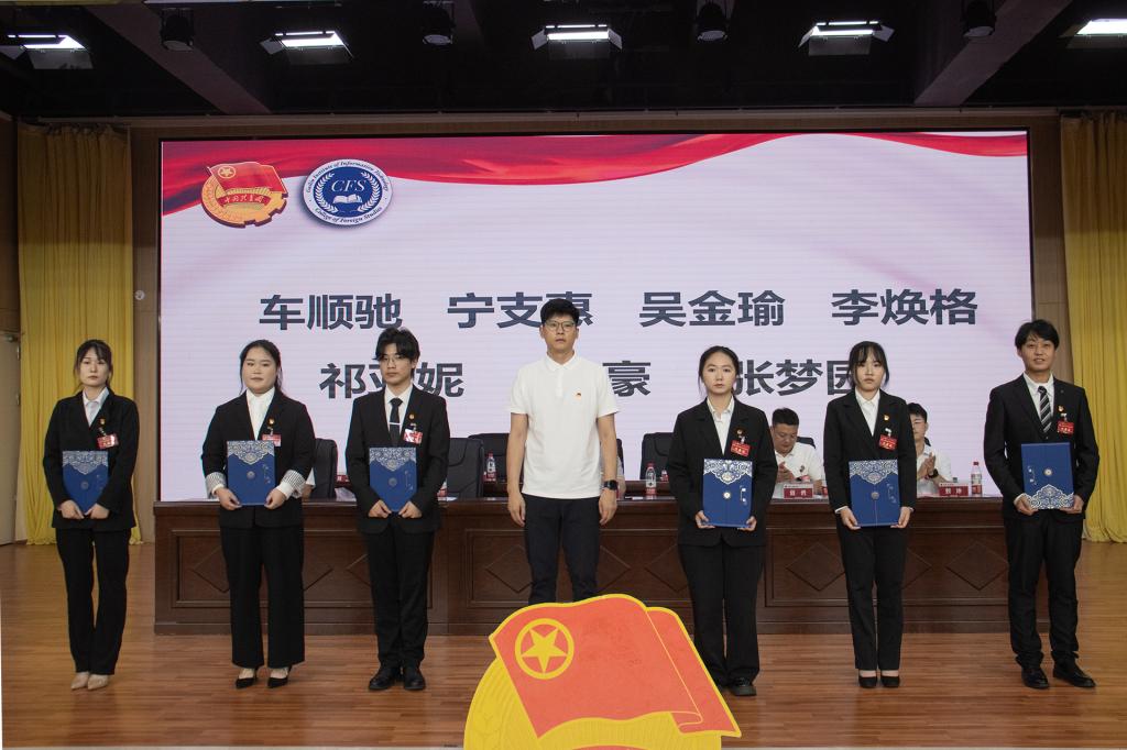 外贸与外语学院副院长、党总支书记李刚为上一届团委委员颁发聘书