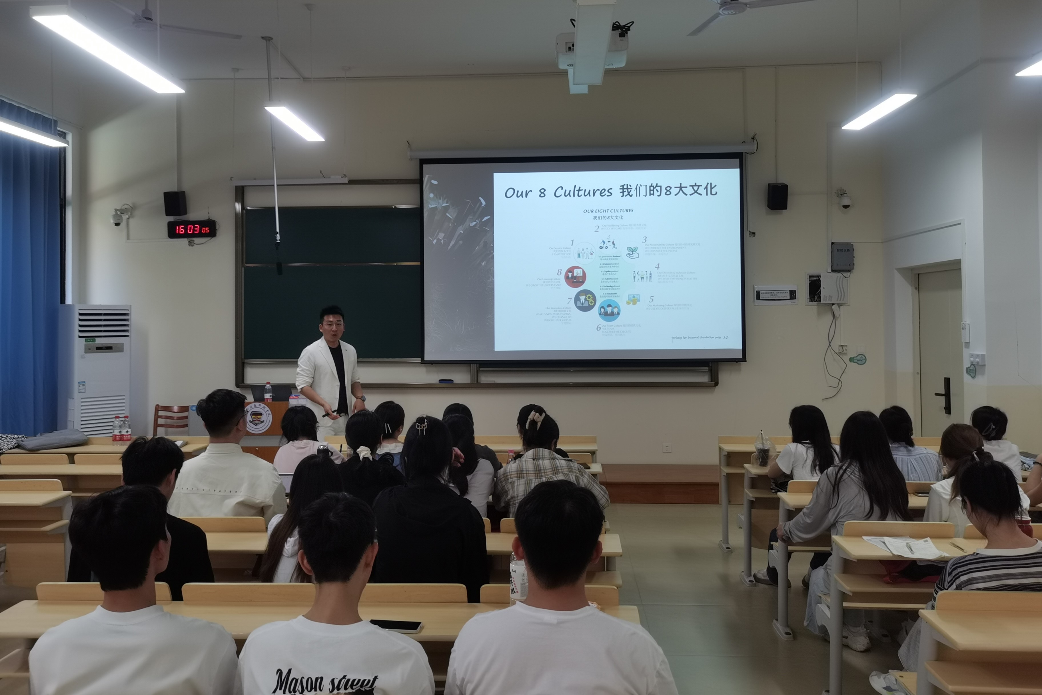图1. 济南大明湖悦苑酒店总经理朱博进校授课