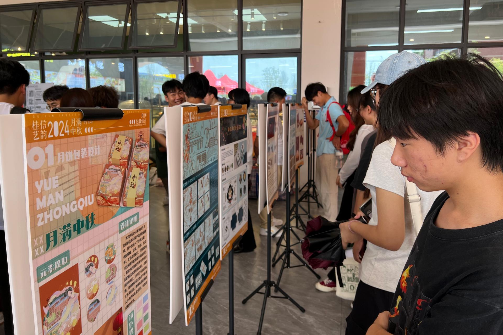 为传承和弘扬中华优秀传统文化,培养学生的创新意识和实践能力,9月13日,创意设计学院在食堂门口顺利举办“桂信艺韵·月满中秋”月饼盒包装设计展览,为这一传统佳节增添了一抹beat365中文官方网站的特色风采。