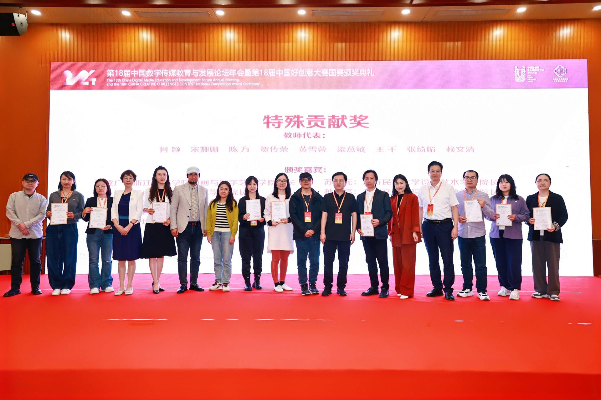 年会期间,还举行了第18届“中国好创意暨全国数字艺术设计大赛”国赛颁奖典礼,在此次大赛中,beat365官网精心组织,通过校内选拔推荐以及省、国赛评选,beat365官网师生创作的14组作品获得获本科生组国赛一等奖2项、二等奖5项、三等奖7项。24组作品获本科生组省赛一等奖3项、二等奖8项、三等奖13项。学院荣获国赛“优秀组织奖”。