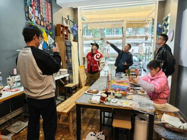 在成都市玉林西路芳草非遗文化孵化空间,公司创始人王总为四位老师介绍了该公司的经营现状做出了阐述,该公司设置于蓓蕾社区内,以社区为根据地,将非遗文化融入社区建设,打造“人文浓郁、活力时尚”新社区,蓓蕾社区为此举办市集,老人售卖文创产品,促进文化交流与传承,焕发社区新活力。社区因文化而兴,文化为社区发展注入活力。近年来,蓓蕾社区聚焦一老一小,铺展“全龄友好”新图景,又以“党建引领、老社青治”为治理内核,聚力解决老旧社区“空心化”“老龄化”等难题,打造“人文浓郁、活力时尚、老城新韵、宜业宜居”的中国式现代化新社区。全新的业态和新的在地文化育满街巷,让老社区焕发出了新的生机与活力。