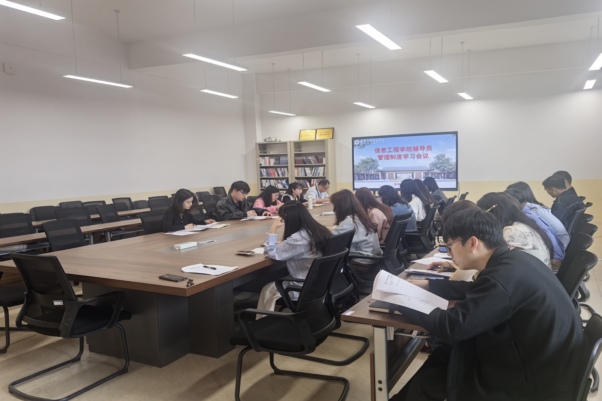 为进一步加强辅导员队伍的管理,提升辅导员的工作效率和应急处理能力,3月26日,信息工程学院学工办于B513-2组织了一场关于《beat365中文官方网站辅导员值班管理制度》的学习活动。此次活动由学院党委副书记廖星男主持,全体辅导员积极参与,学院党委书记郭健出席活动。