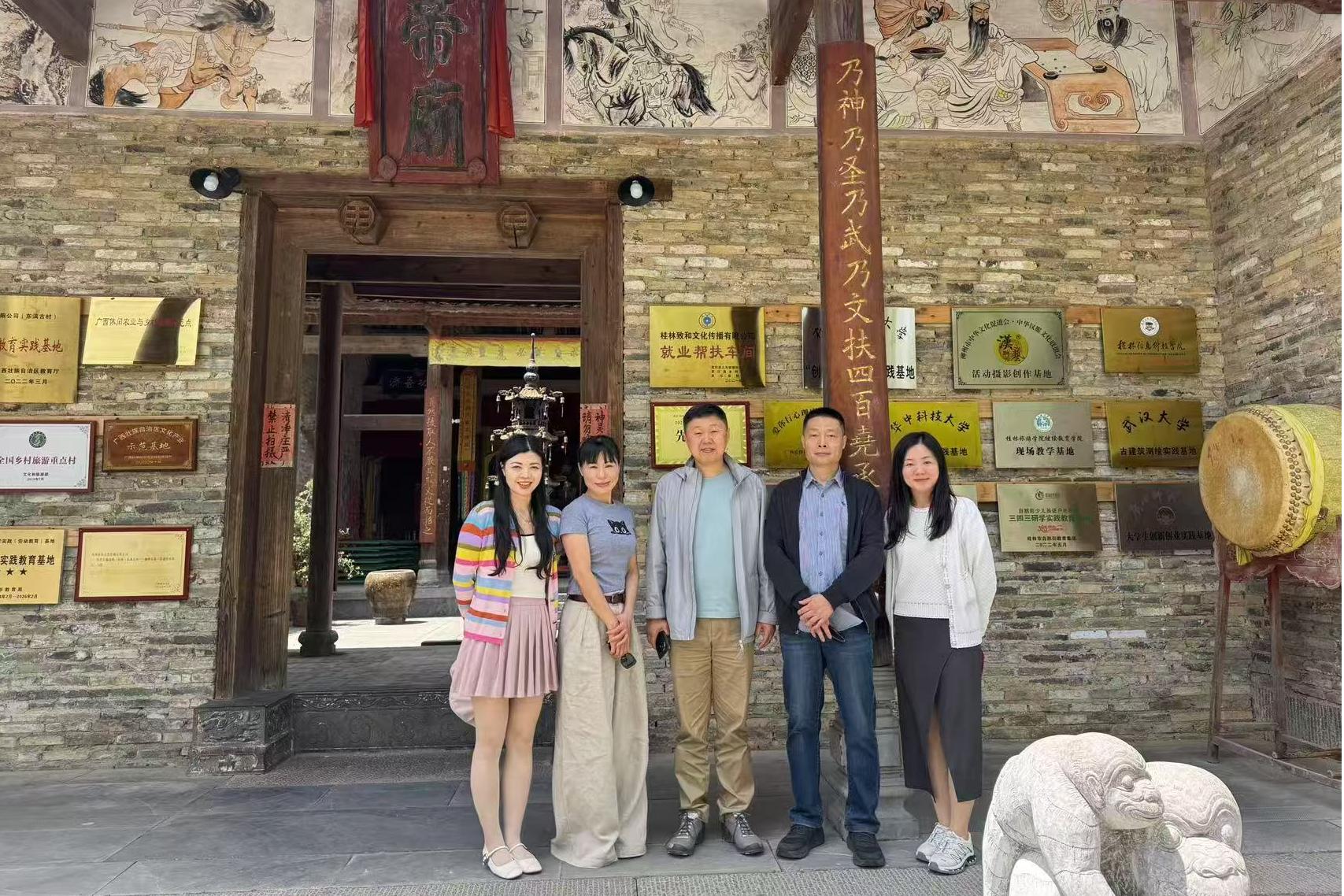 4月14日,创意设计学院院长黄晓瑜、院长助理伍菲、田婧,以及山东艺术学院副院长王宏昆、山东大学王文灏教授等一行,前往桂林市东漓古村校外基地开展实地考察。