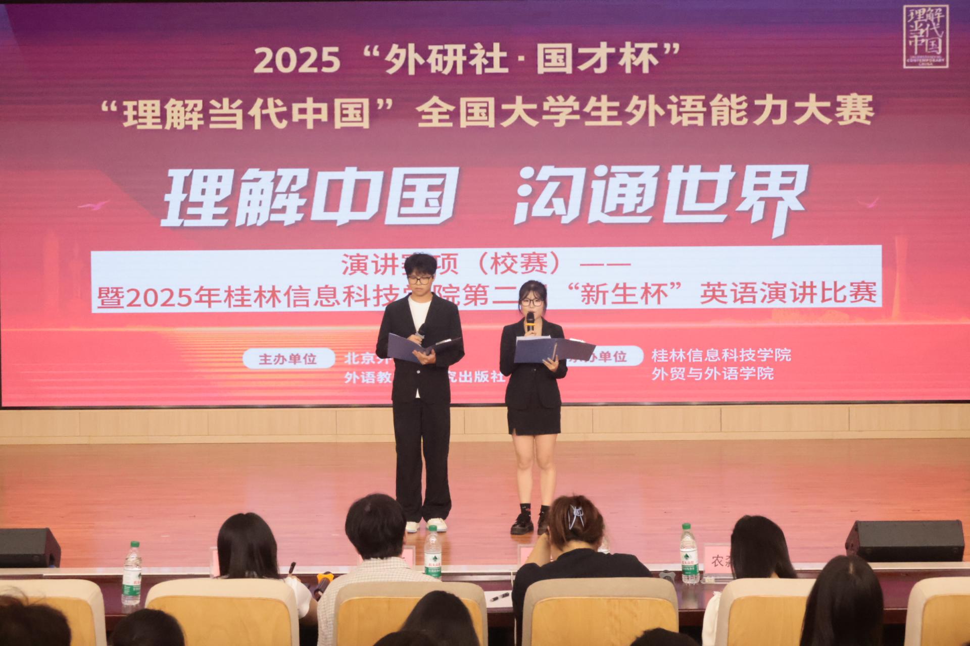 10月16日晚,由beat365官网外贸与外语学院承办的2025年“外研社・国才杯”全国大学生外语能力大赛演讲赛项(校赛)暨2025年beat365中文官方网站第二届“新生杯”英语演讲比赛,在博文楼F107报告厅圆满落下帷幕。来自全校各院系的参赛选手齐聚一堂,以英语为桥,用青春之声诠释时代主题,展现了beat365官网学子的外语素养与思辨风采。