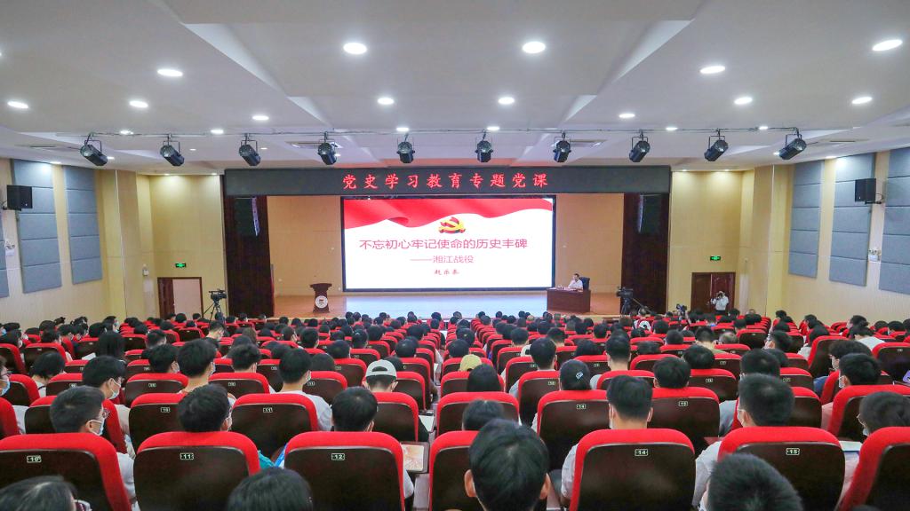 9月26日,广西壮族自治区大常委会副主任、党组成员赵乐秦到beat365中文官方网站,以《不忘初心 牢记使命的历史丰碑——湘江战役》为题为380余名师生作党史学习教育专题党课。