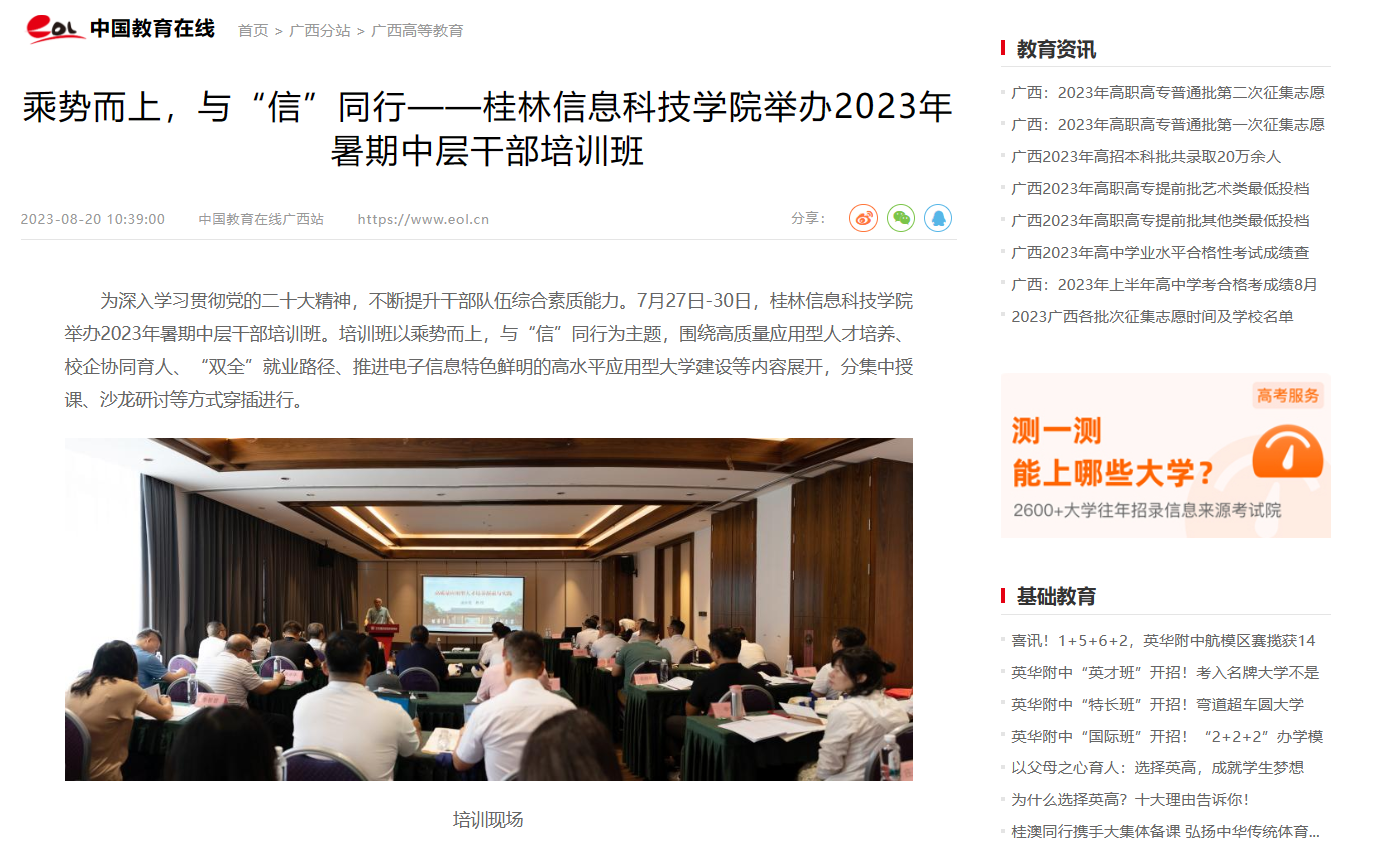 中国教育在线:乘势而上,与“信”同行——beat365中文官方网站举办2023年暑期中层干部培训班