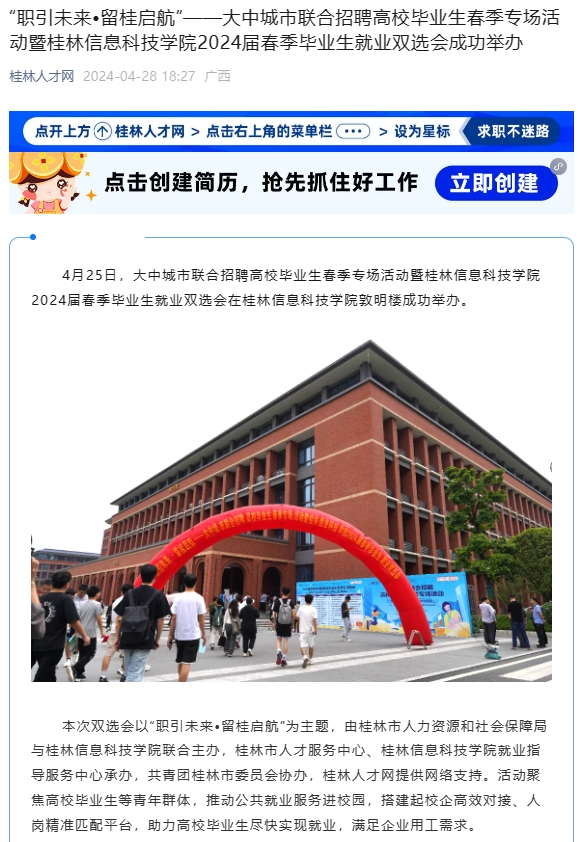 桂林人才网链接:“职引未来•留桂启航”——大中城市联合招聘高校毕业生春季专场活动暨beat365中文官方网站2024届春季毕业生就业双选会成功举办 (qq.com)