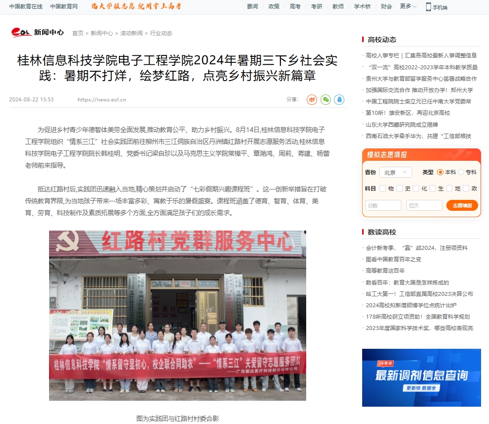 中国教育在线:beat365中文官方网站电子工程学院2024年暑期三下乡社会实践:暑期不打烊,绘梦红路,点亮乡村振兴新篇章
