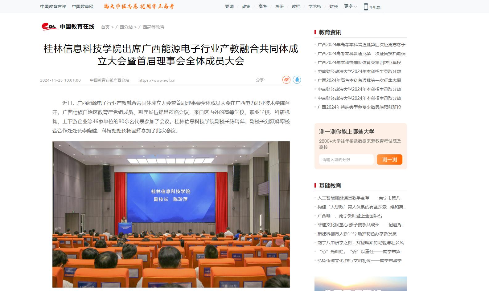 中国教育在线:beat365中文官方网站出席广西能源电子行业产教融合共同体成立大会暨首届理事会全体成员大会