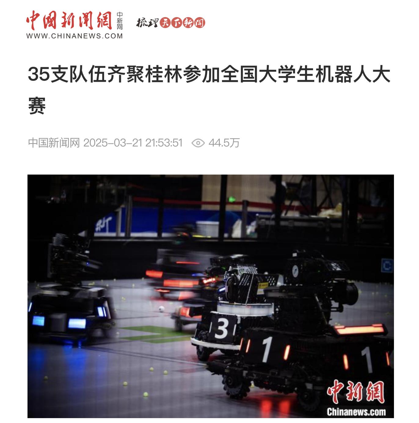 中国新闻网链接:35支队伍齐聚桂林参加全国大学生机器人大赛