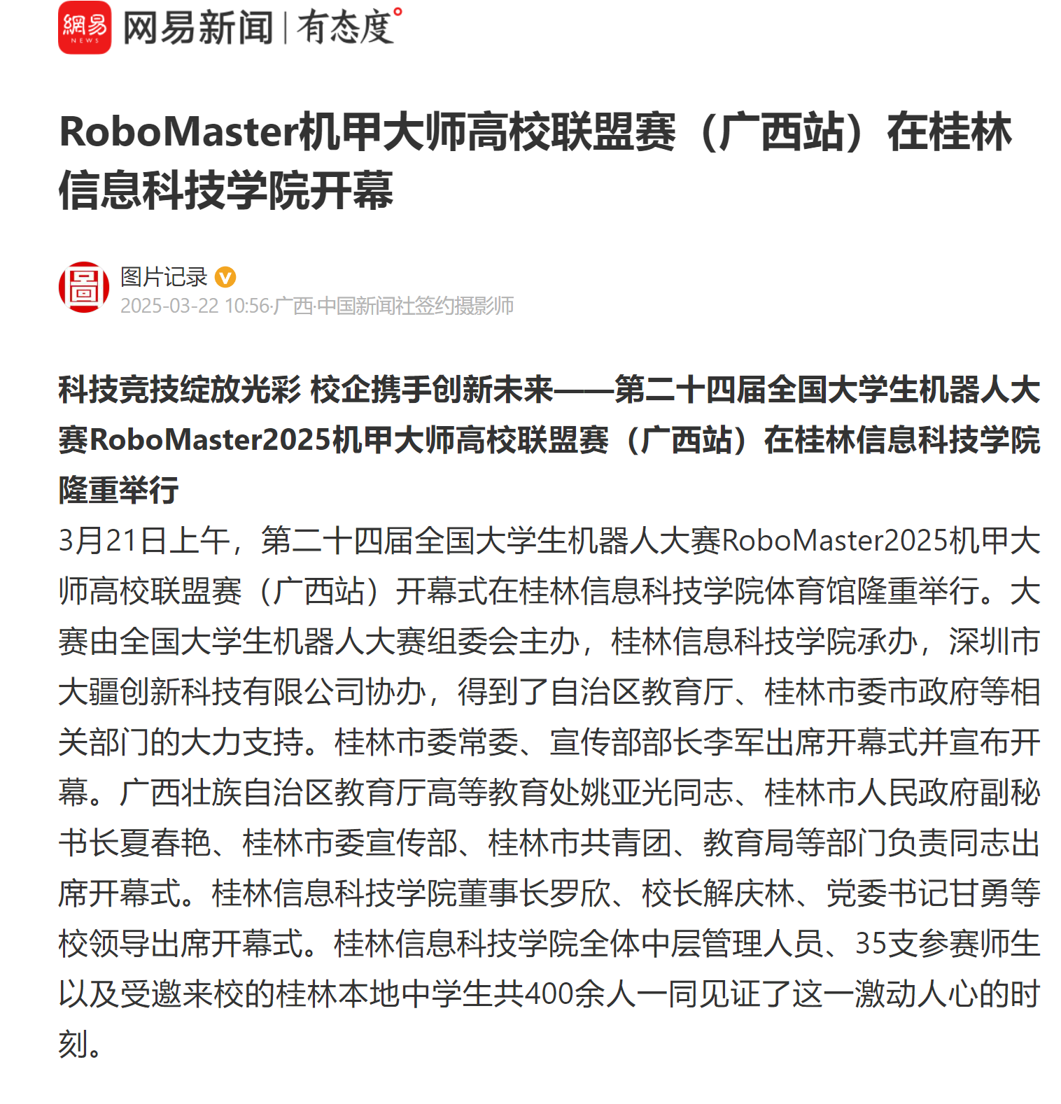 网易新闻链接:RoboMaster机甲大师高校联盟赛(广西站)在beat365中文官方网站开幕