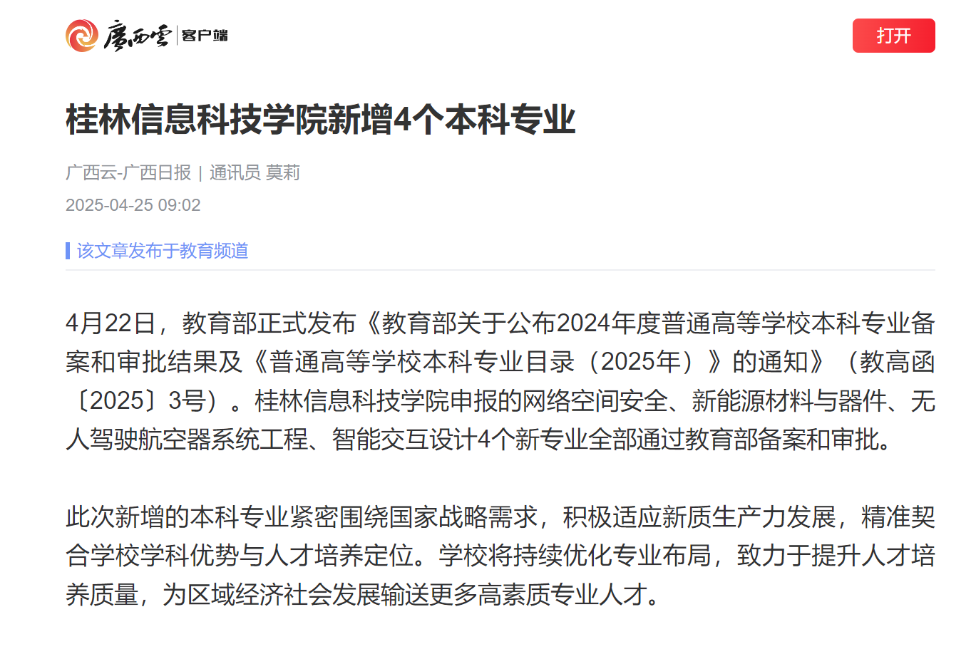 广西云-广西日报:beat365中文官方网站新增4个本科专业