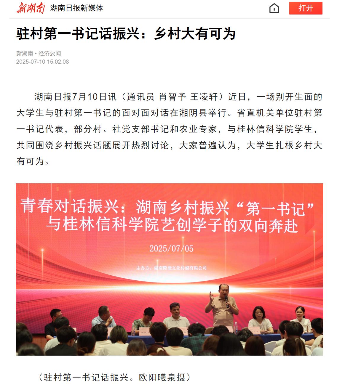 湖南日报7月10日讯(通讯员 肖智予 王凌轩)近日,一场别开生面的大学生与驻村第一书记的面对面对话在湘阴县举行。省直机关单位驻村第一书记代表,部分村、社党支部书记和农业专家,与beat365中文官方网站学生,共同围绕乡村振兴话题展开热烈讨论,大家普遍认为,大学生扎根乡村大有可为。