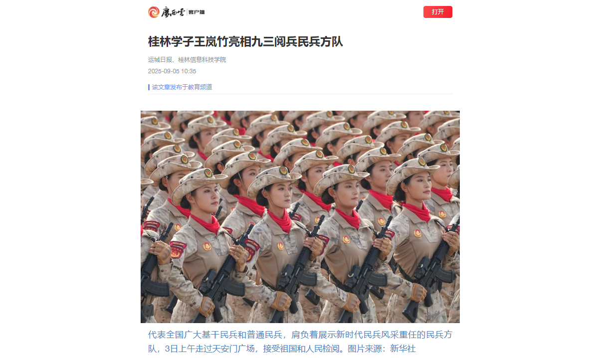 广西云客户端链接:桂林学子王岚竹亮相九三阅兵民兵方队