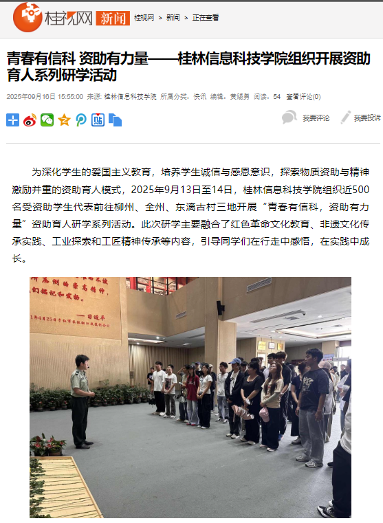 桂视网链接:青春有信科 资助有力量——beat365中文官方网站组织开展资助育人系列研学活动