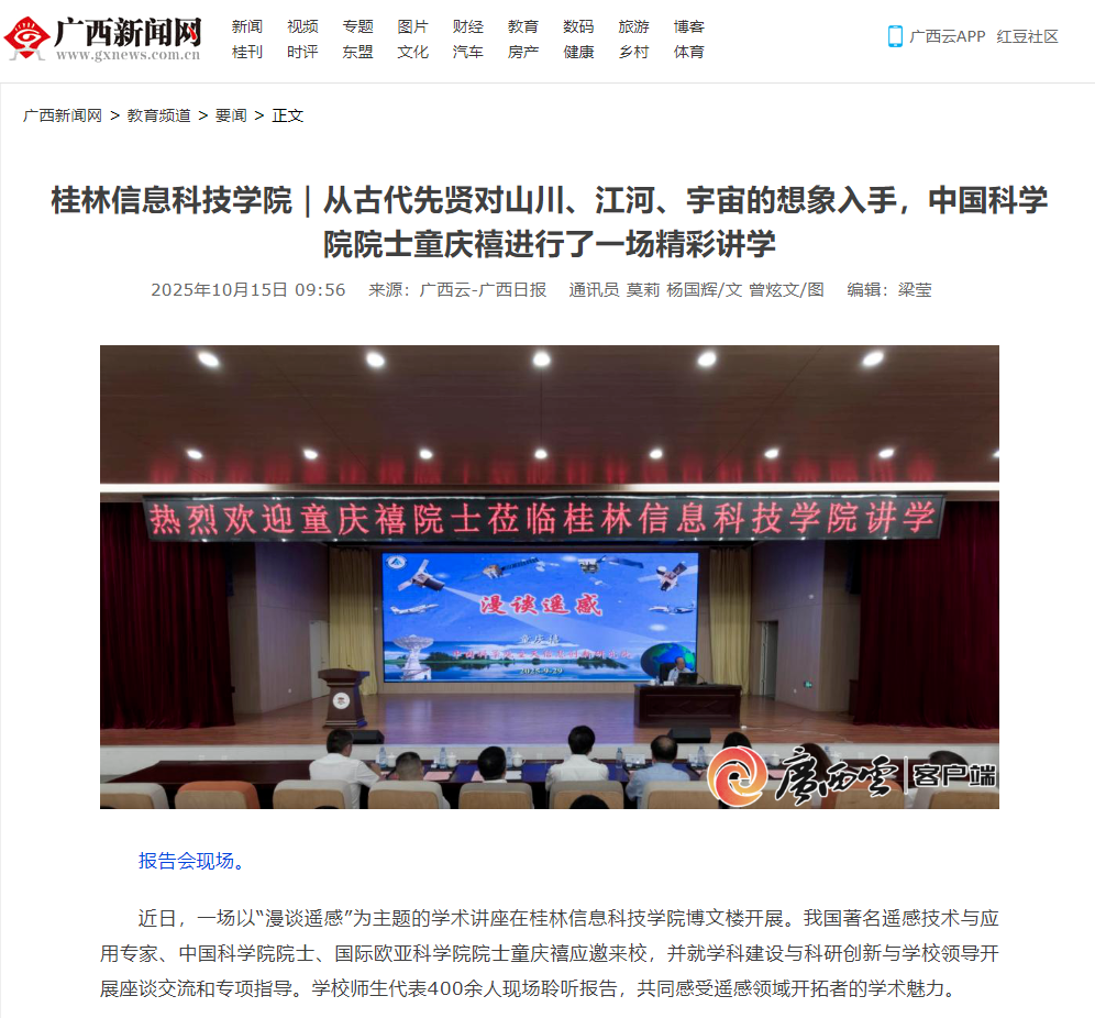 广西新闻网:beat365中文官方网站|从古代先贤对山川、江河、宇宙的想象入手,中国科学院院士童庆禧进行了一场精彩讲学