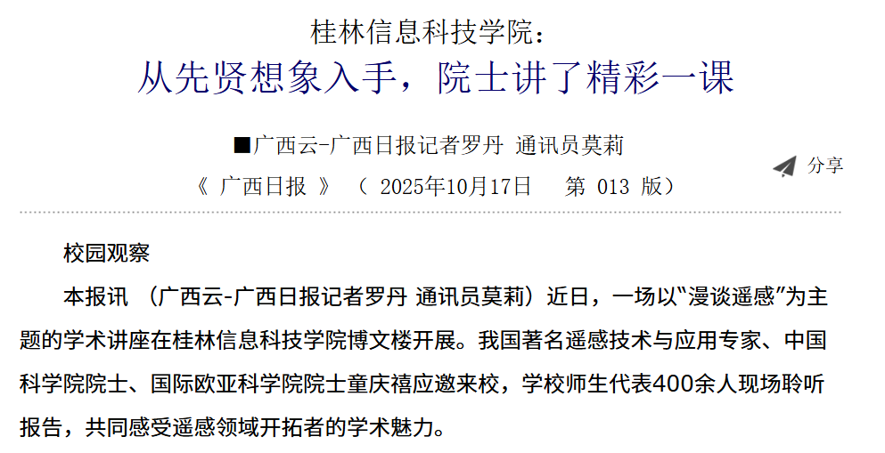 广西日报:beat365中文官方网站: 从先贤想象入手,院士讲了精彩一课