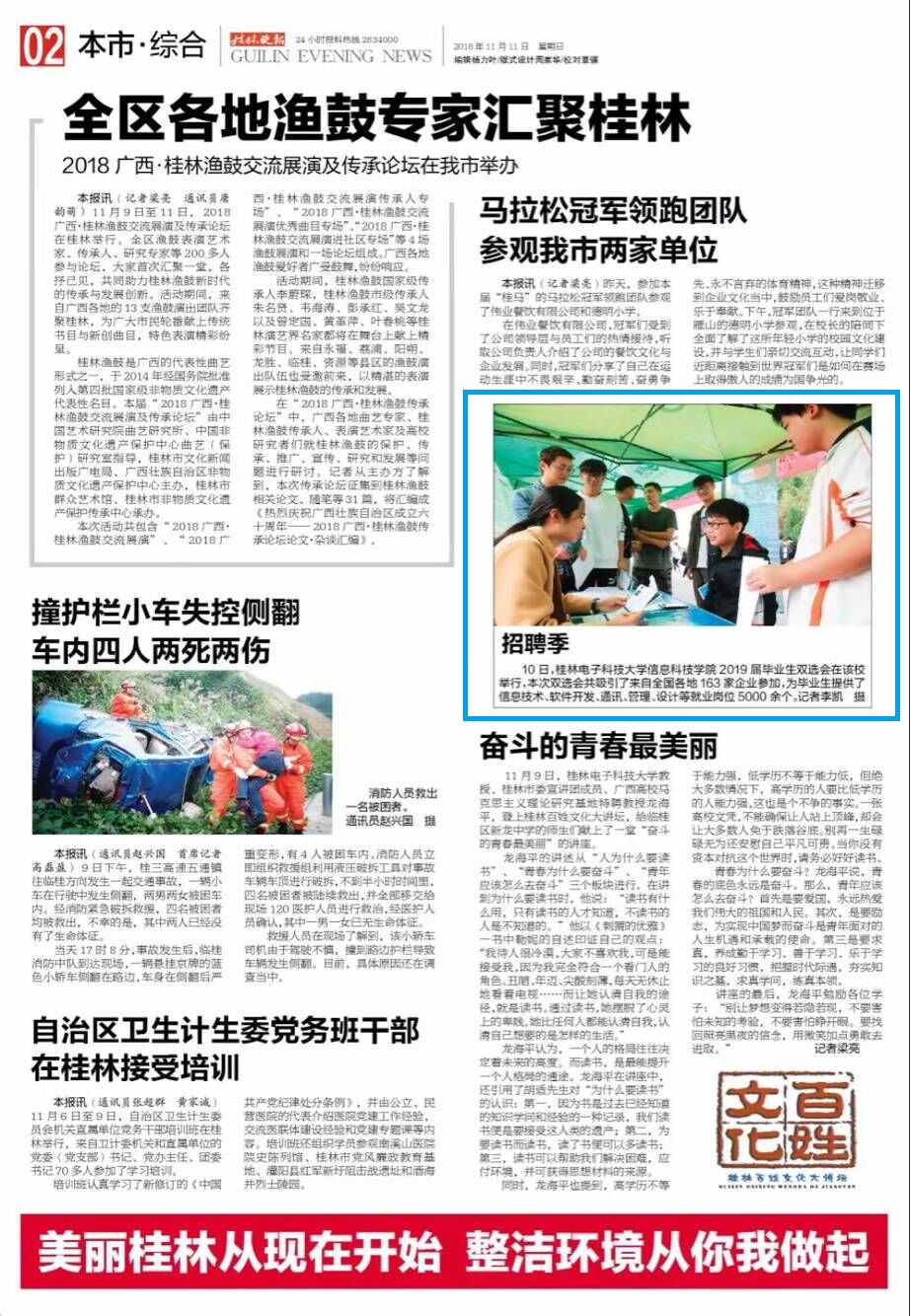 桂林晚报:10日,桂林电子科技大学信息科技学院2019届毕业生双选会在该校举行,本次双选会共吸引了来自全国各地163家企业参加,为毕业生提供了信息技术、软件开发、通讯、管理、设计等就业岗位5000余个。