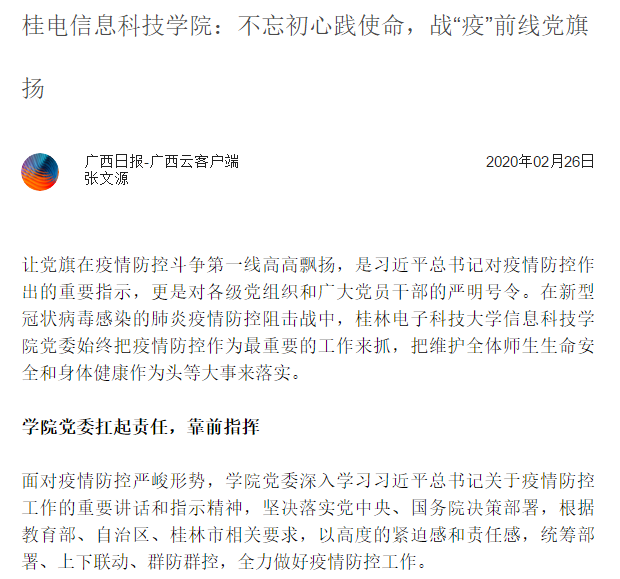 广西日报:桂电信息科技学院不忘初心践使命,战“疫”前线党旗扬