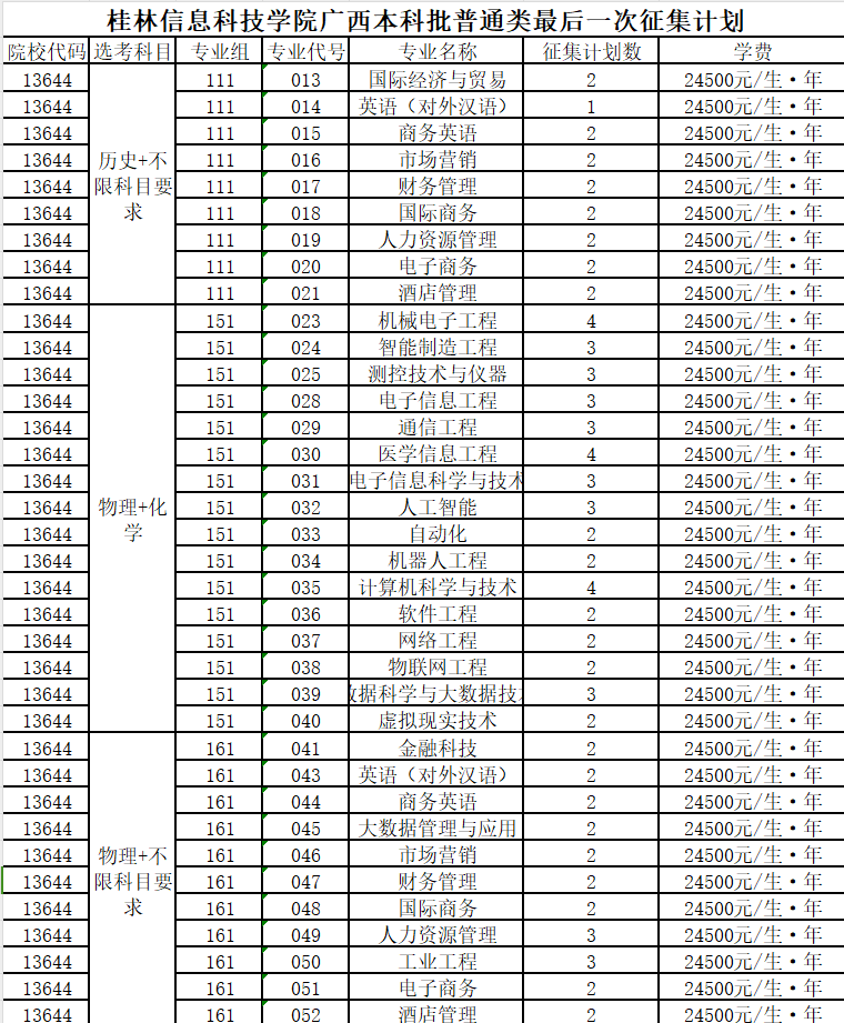 备注:最终征集计划以广西招生考试院公布的为准。