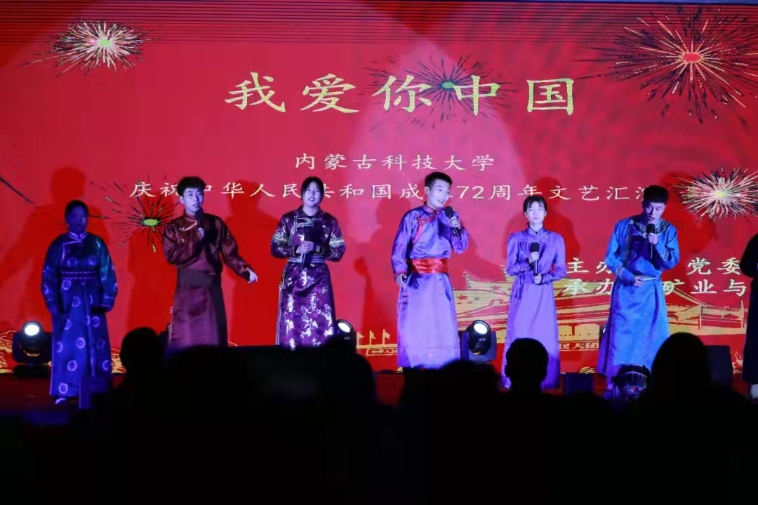 在灯光秀的震撼里,文艺汇演适时登场。《祥狮献福》送来好运;一曲《没有共产党就没有新中国》篆刻着中国共产党的胆略和英勇;师生深情演绎《我和我的祖国》,吟唱着对祖国的无限眷恋和深情;矿煤学子《献给祖国》的深情告白,铿锵的青年声音,诉说着不负时代、不负韶华、不负党和人民的殷切期望;我爱我的祖国,那是心底蕴藏着的一种最炽热、最真挚、最高尚的情感,情不自禁在内心深深呐喊:《我爱你中国》,我爱你,中国;“红日升在东方,其大道满霞光”歌舞《万疆》,精彩呈现;充满民族特色的《守望相助》,带我们在歌声中尽情感受草原的无限秀美,感受各民族的团结和谐;矿煤学子礼赞祖国,一曲《歌唱祖国》,唱出浓浓爱国情。