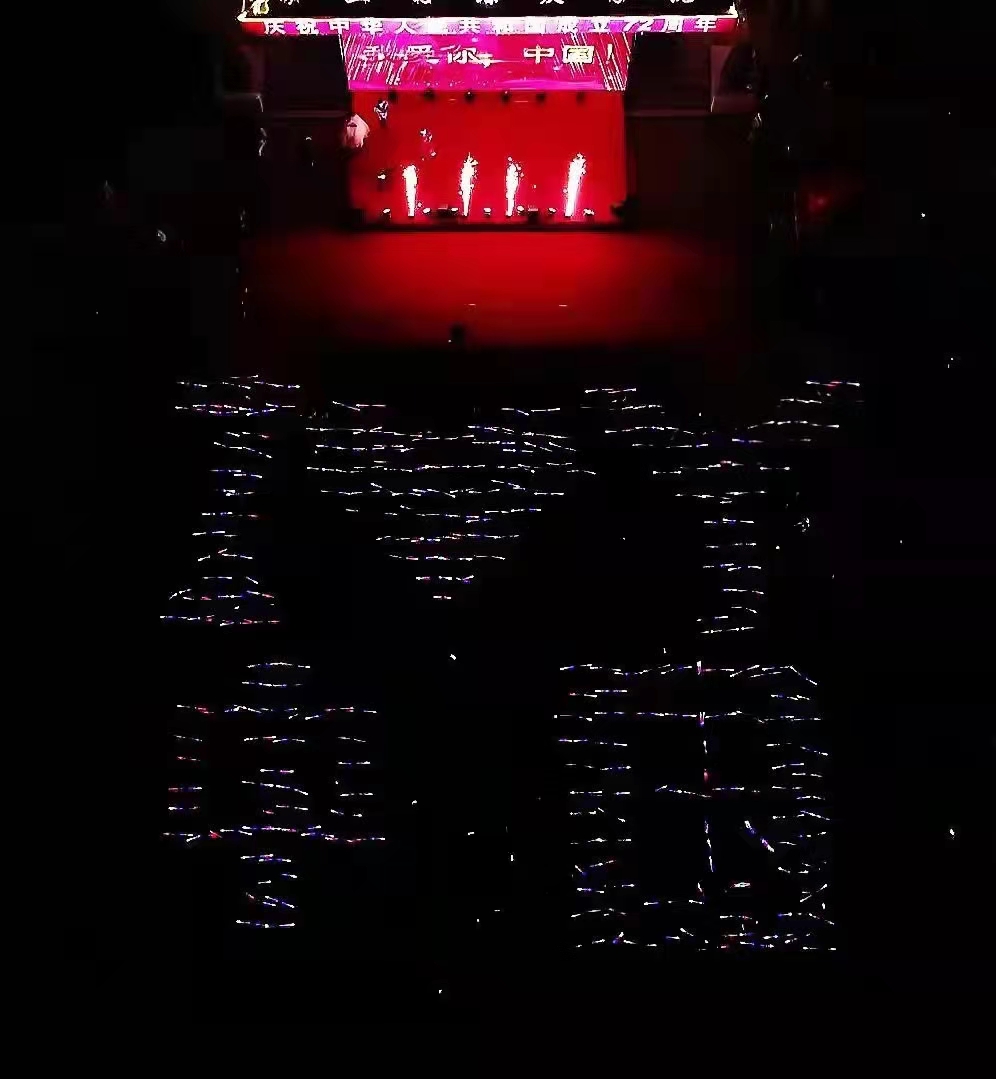 在灯光秀环节,荧光伴着晚风,“我爱你中国”闪亮全场。灯火映万家,万家中国梦,点点相聚,万丈光芒。