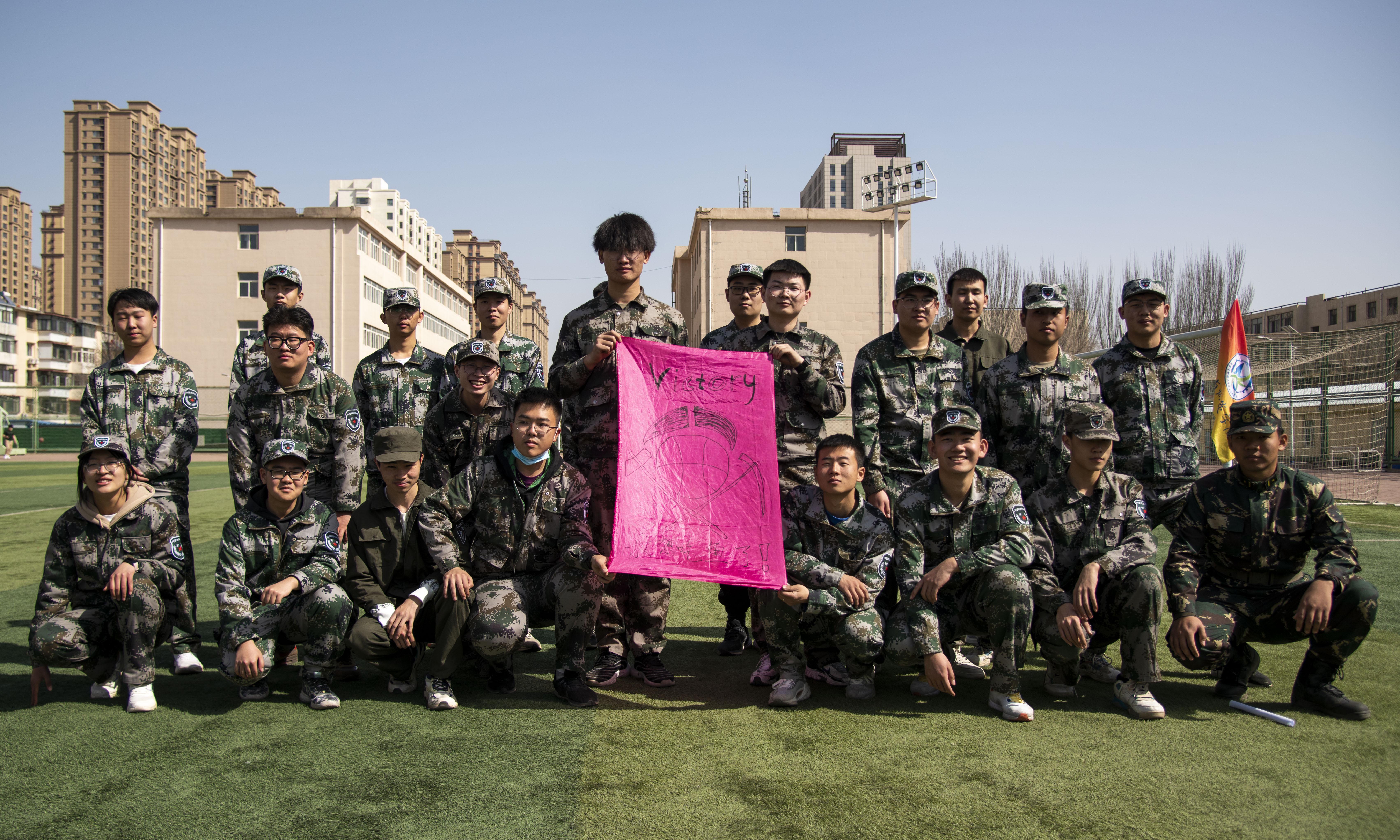 本次素质拓展活动以分组的形式开展。各队集思广益,取队名、制作队旗、想口号、组队形,创意层出。