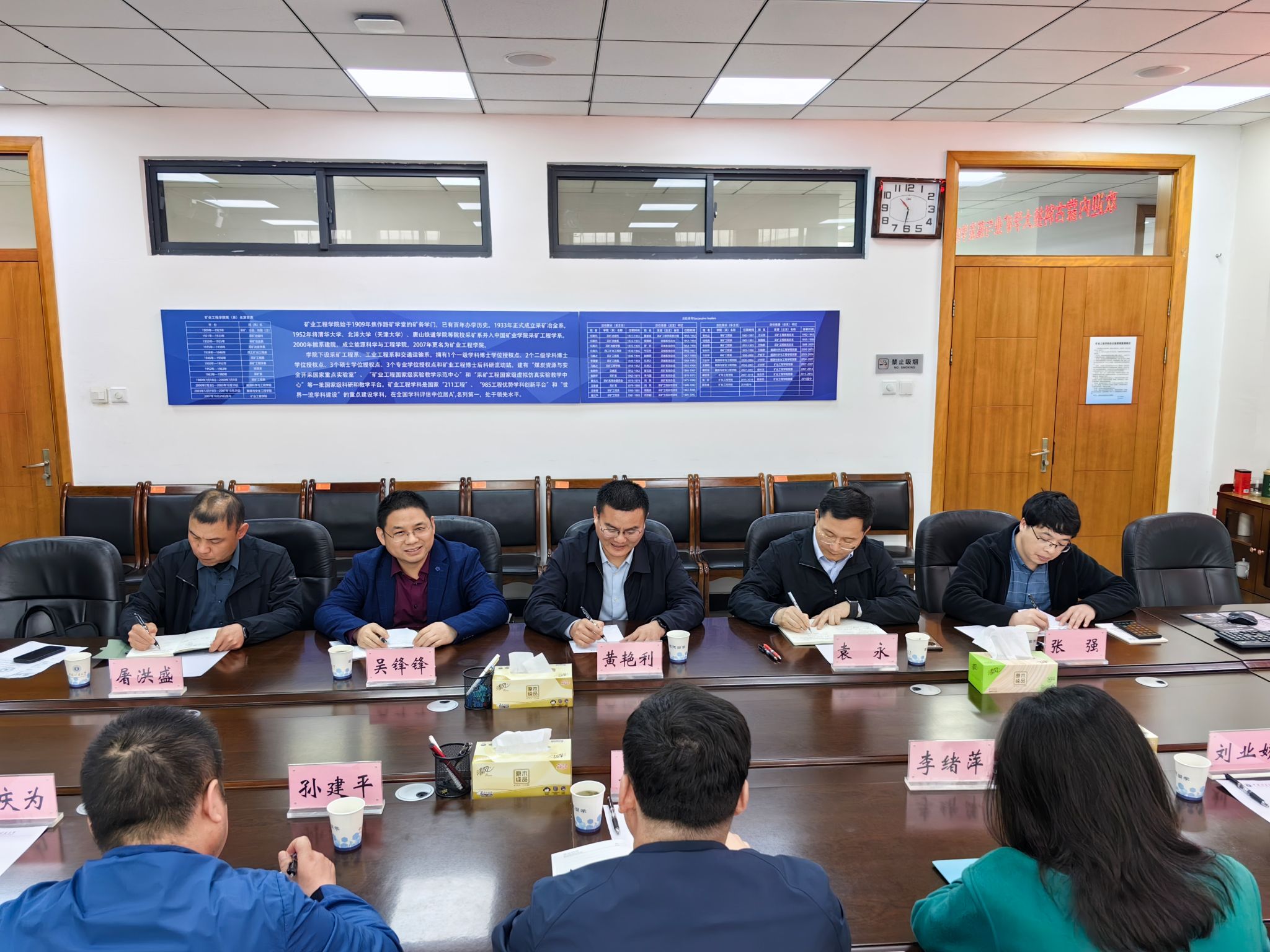 上午,副院长王创业、孙建平一行与中国矿业大学矿业工程学院院长黄艳利、副院长袁永、采矿工程系支部书记吴锋锋、智能采矿工程系副主任张强、学科建设办公室副主任屠洪盛进行关于采矿工程学科、智能采矿专业的建设与发展交流。
